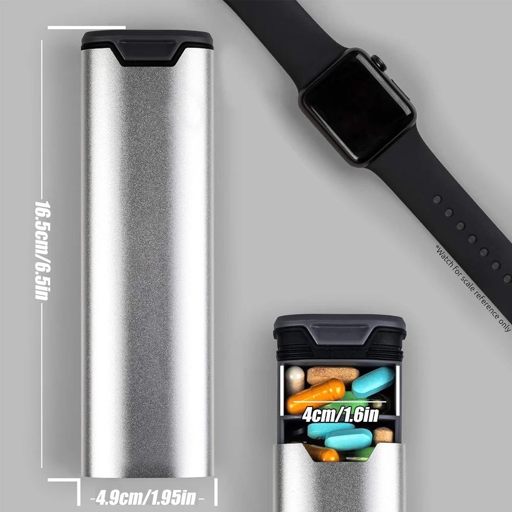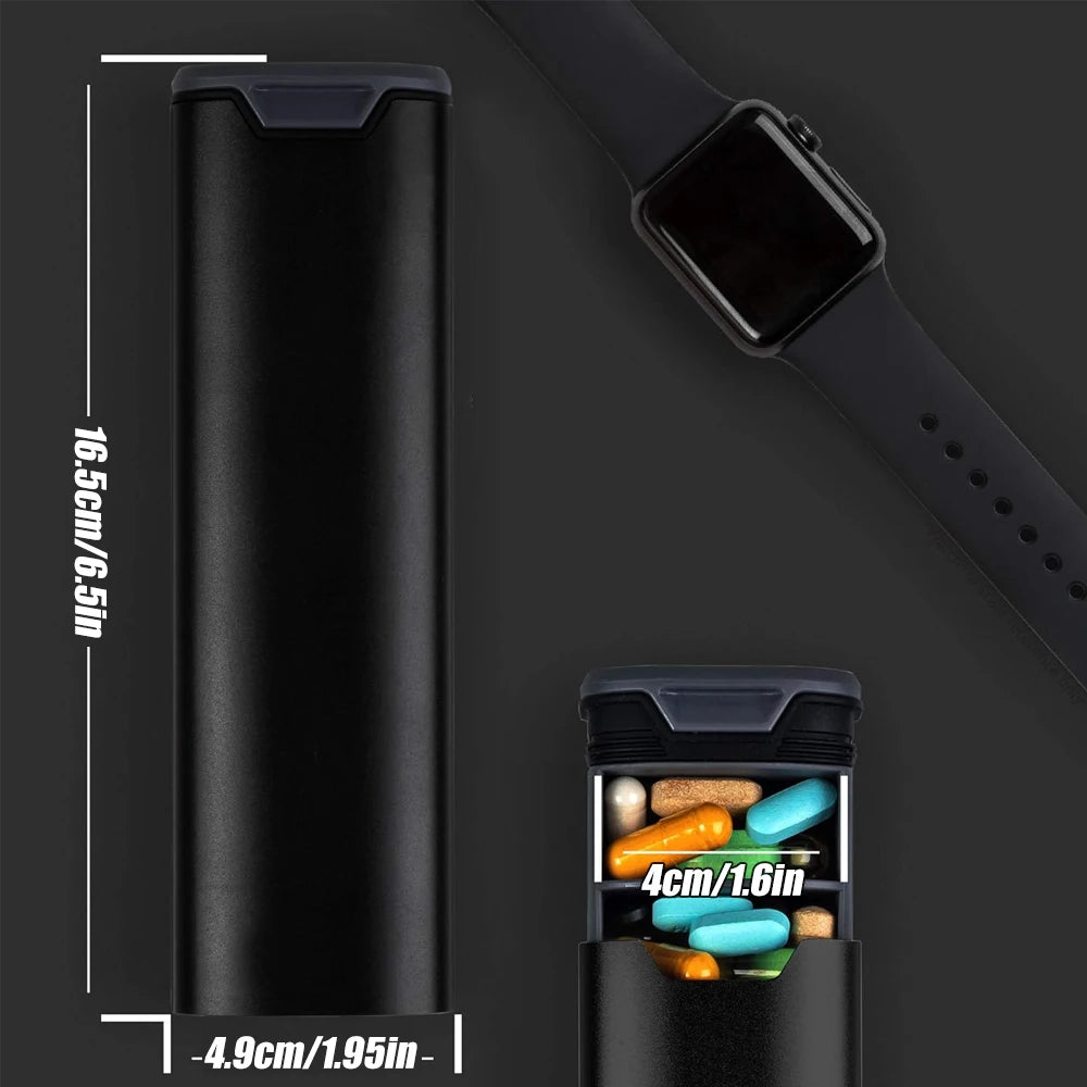 Secure Snap Closure: Designed with a secure snap lid, the organizer keeps your pills safely contained, preventing spills and mix-ups during travel.