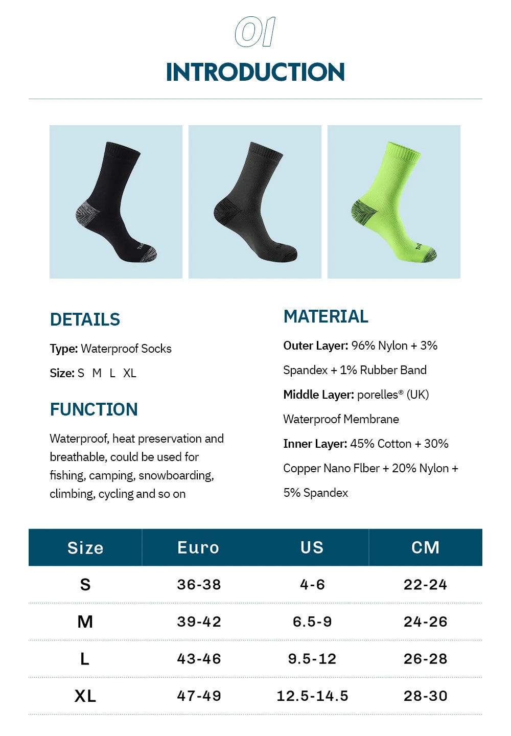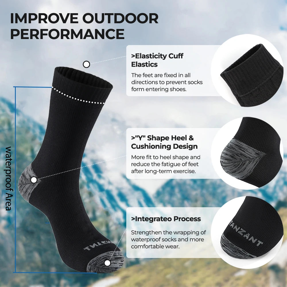 Waterproof Technology: Engineered with advanced waterproof materials, these socks keep your feet dry in wet conditions, protecting against moisture from rain, streams, and muddy trails while allowing breathability.
